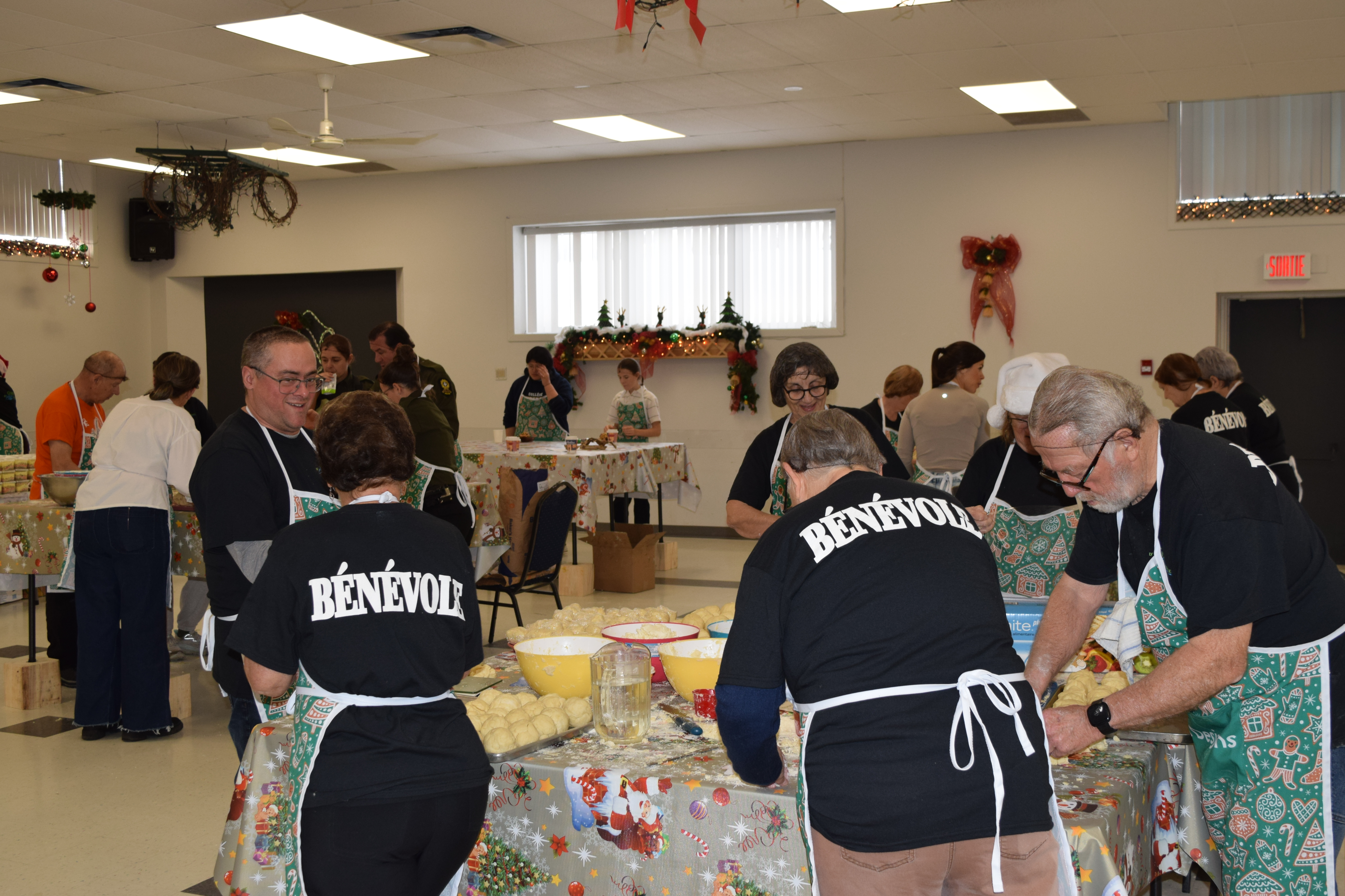 Pour rendre cela possible, nos bénévoles ont cuisiné plus de 1 000 livres de viande et façonné 1 800 boules de pâte !