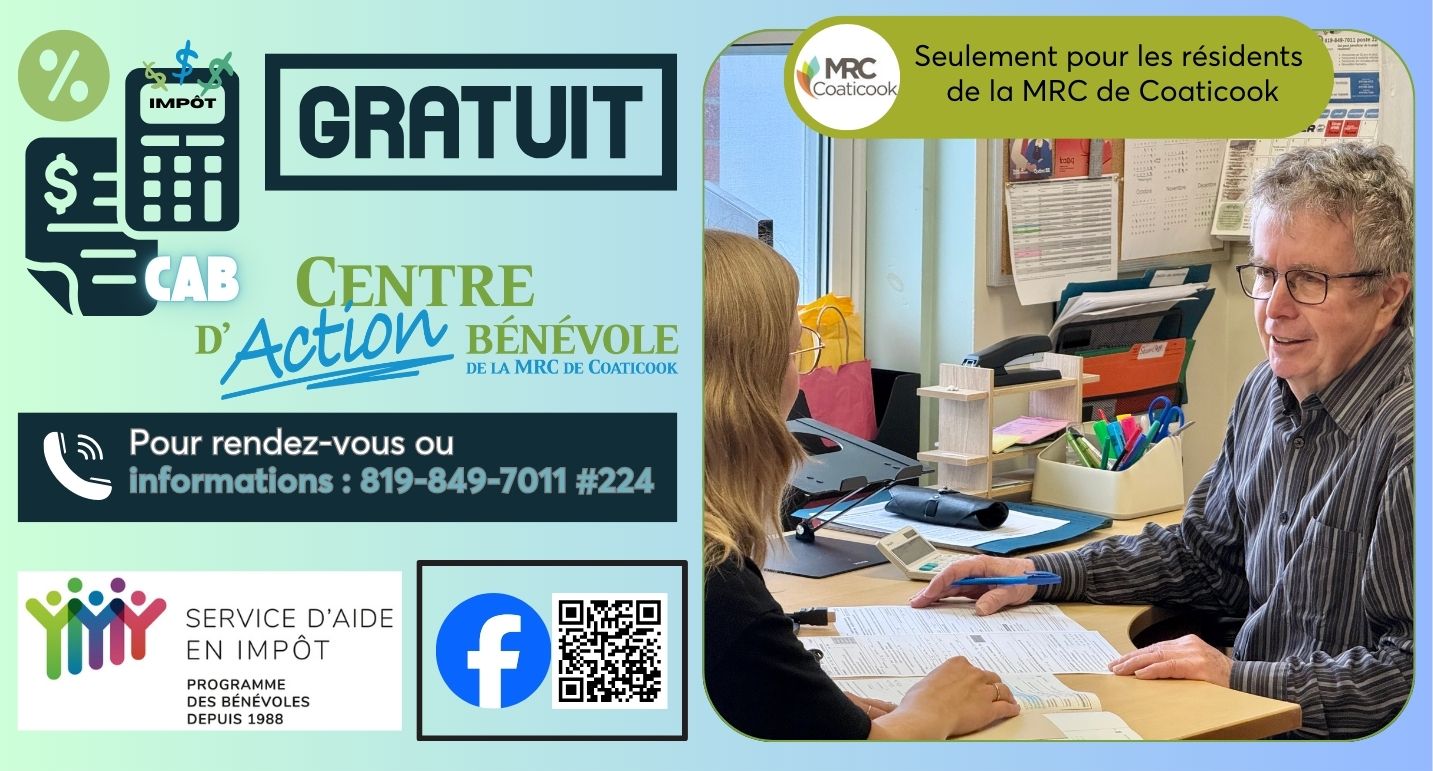 Le Centre d’action bénévole de la MRC de Coaticook offre des cliniques d’impôt gratuites et confidentielles à la population admissible de la région.